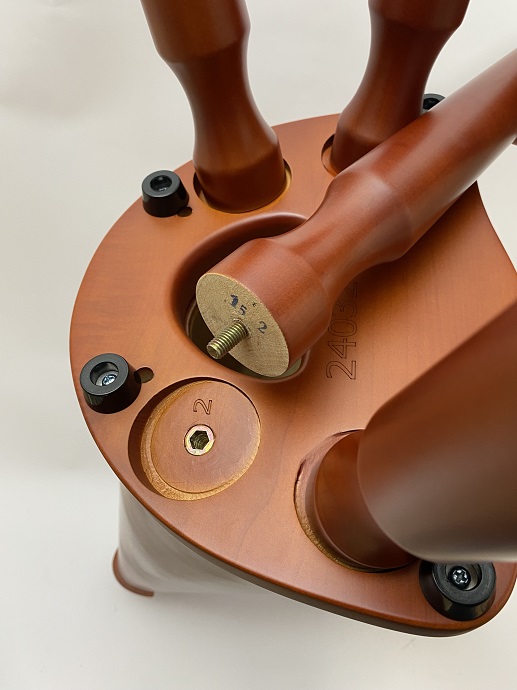 脱着式の脚の先とハープ本体の底面には演奏時に床面との安定が取りやすい硬質のゴム脚を付けるなど