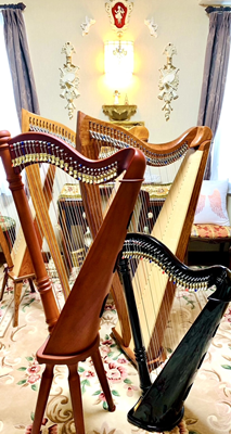 麻里先生は結婚式やさまざまなイベントでハープ演奏しています。